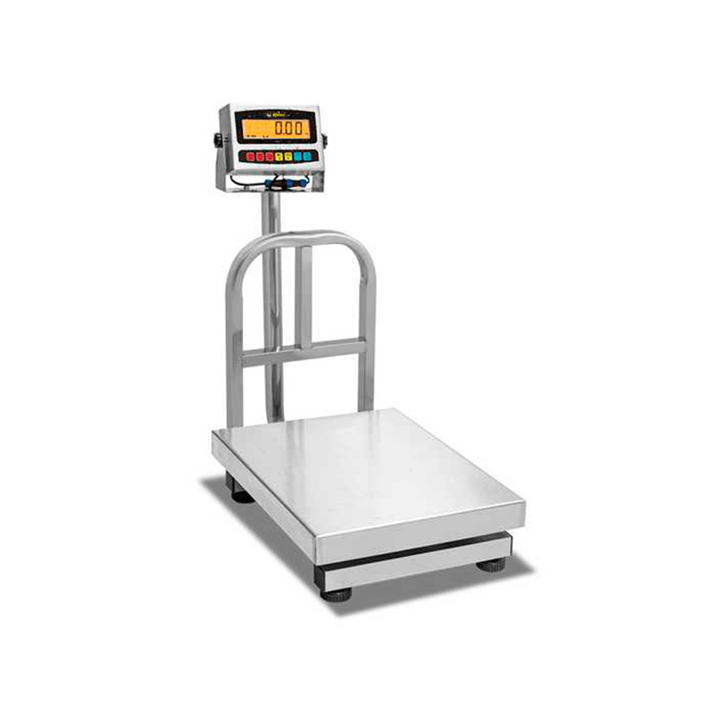Gracias a su grado de protección IP66 en la plataforma e IP67 en el indicador, resiste salpicaduras y limpieza constante sin deteriorarse. Cuenta con una barra de soporte que optimiza la eficiencia en el proceso de pesaje, y una batería recargable de hasta 50 horas de duración para operación continua sin interrupciones.