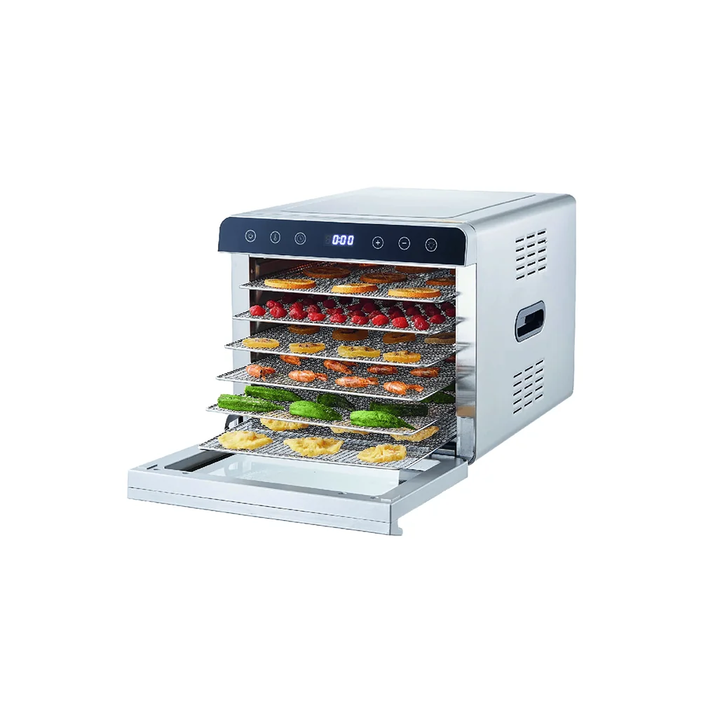 El deshidratador de alimentos Rhino DESALI-6 es una opción profesional y confiable para conservar frutas, verduras, carnes o hierbas sin perder sabor ni nutrientes. Con 6 charolas de acero inoxidable, luz interna y un panel táctil intuitivo, permite controlar temperatura y tiempo con total precisión. Su diseño moderno y seguro lo hace ideal tanto para cocinas comerciales como domésticas.