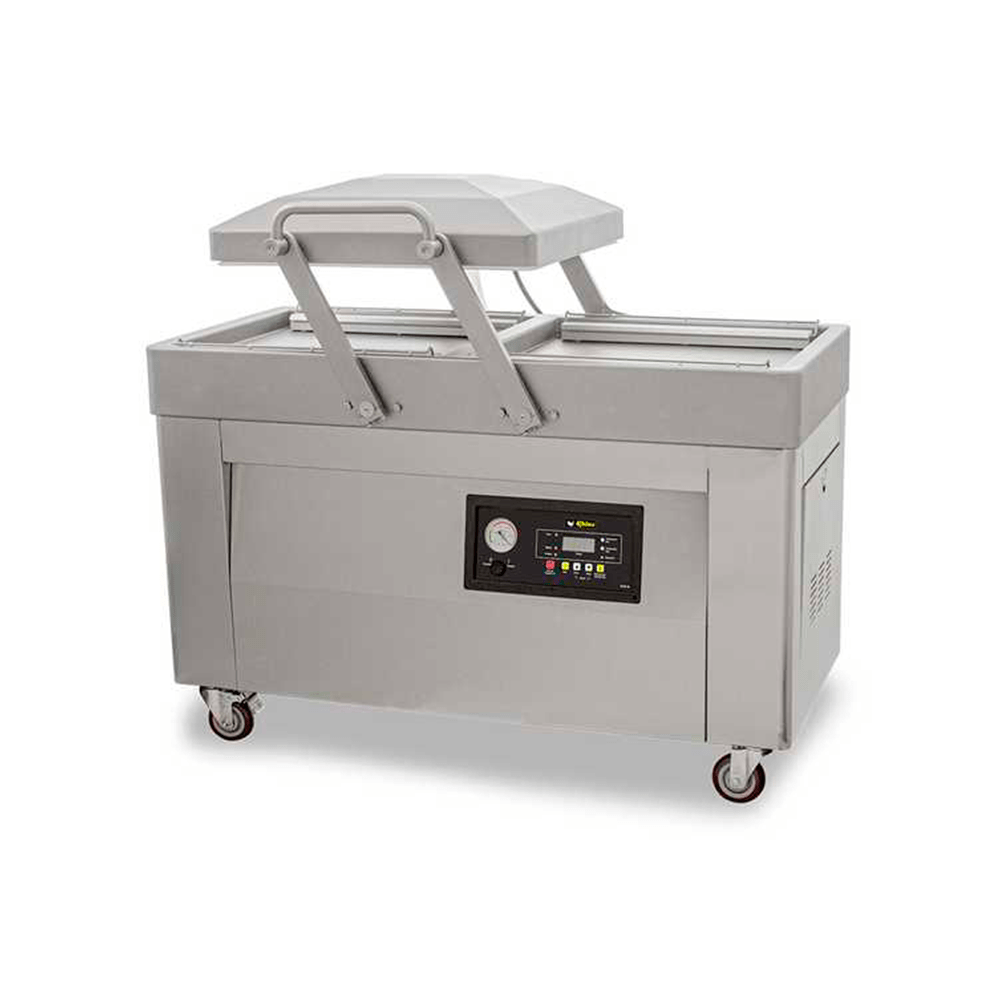 • Doble cámara de vacío de acero inoxidable para empacado simultáneo.