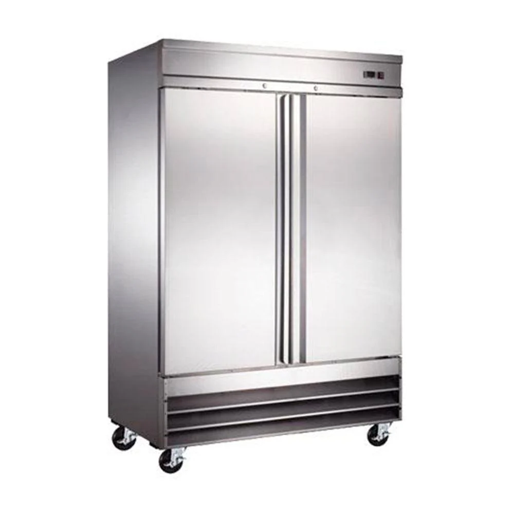 Construcción exterior e interior con acero inoxidable, excepto respaldo. Puertas con dispositivo automático de cierre. Dimensiones: 137 x 81 x 210, Pies cúbicos: 49. Motor: 1/3 HP. Voltaje: 115V